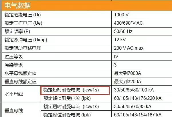 热稳定通常用短时耐受电流Icw和短时耐受时间tcw表达,例如: