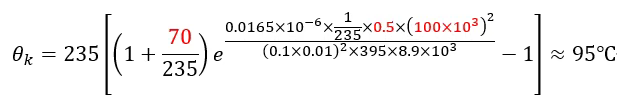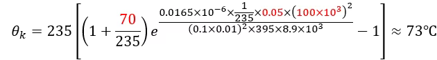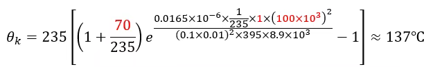 θ0代表铜排最开始的温度,如果短路发生在上电瞬间,θ0代表环温;如果运行时发生短路,那么θ0代表运行时的温度,铜排长期允许运行温度按70℃考虑。