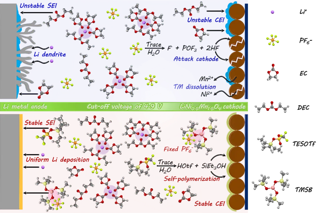 Liang Li, Tao Yang, Kiaxiang Ren, Xinchun Song, Shilin Wu, Hai-Wen Li, Zhipeng Jiang*, Mengjun Sun*, Yongtao Li*, Silyl additives-driven synergistic inhibition engineering enables 4.9 V LiNi0.5Mn1.5O4 batteries beyond 300 Wh kg−1. Materials Today