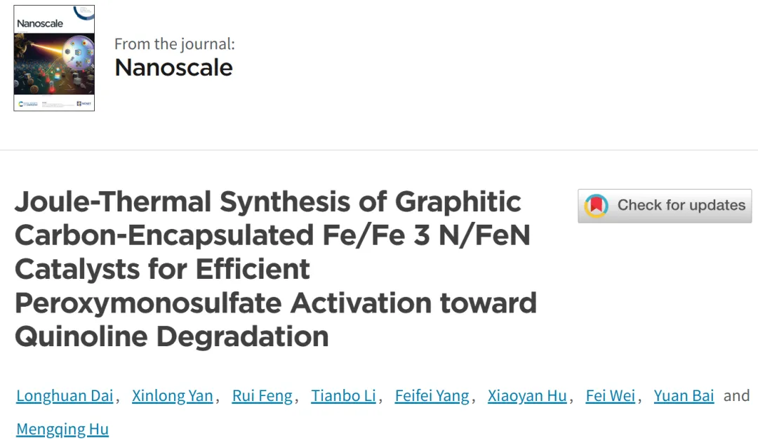 2025年10月9日,中国矿业大学闫新龙团队在Nanoscale期刊发表题为“Joule-Thermal Synthesis of Graphitic Carbon-Encapsulated Fe/Fe3N/FeN Catalysts for Efficient Peroxymonosulfate Activation toward Quinoline Degradation”的研究论文。本研究介绍了一种新型石墨碳包覆的Fe/Fe3N/FeN催化剂(Fe-NC-FJH)。该催化剂采用碳辅助快速焦耳加热法合成,用于激活过一硫酸盐以有效降解喹啉。实验结果表明,Fe-NC-FJH的降解效率显著提高,降解反应动力学速率常数k=0.18 min-1,是传统热解方法制备的催化剂的2.14倍。密度泛函理论计算表明,石墨碳包覆增强了Fe-NC-FJH对过一硫酸盐羟基O原子的吸附,从而提高了对喹啉降解至关重要的SO₄•⁻ 自由基的产率。此外,Fe-NC-FJH在较宽的pH范围(约3-11)内表现出强大的催化活性,并在个连续循环中表现出显著的稳定性。最后,提出了喹啉的三种降解途径,并评估了这些中间体的毒性。