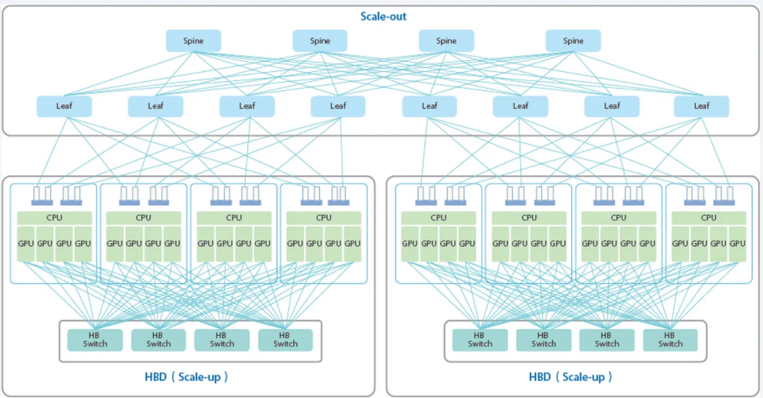 在AI计算网络中,Scale-Up网络与Scale-Out网络并存: