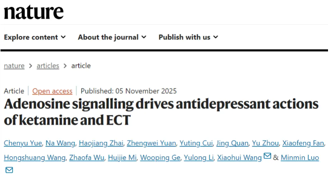 1.Yue, C., Wang, N., Zhai, H.et al. Adenosine signalling drives antidepressant actions of and ECT. Nature (2025). https://doi.org/10.1038/s41586-025-09755-9