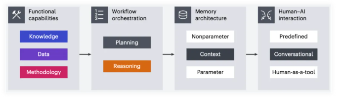 第一层是功能能力,通过专业工具扩展大语言模型(LLM)的领域知识访问、数据处理和方法实施能力。