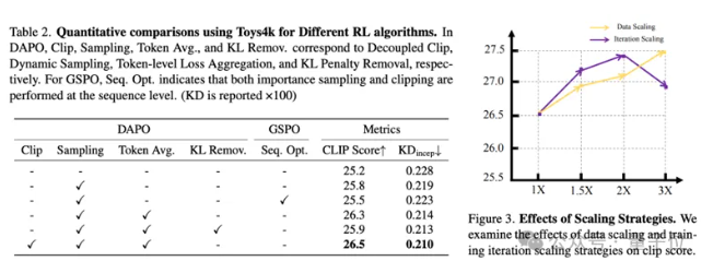 完全去掉KL惩罚则会掉点——KL散度在3D生成中依然起到重要的正则化作用,防止策略离参考分布漂移过远。
