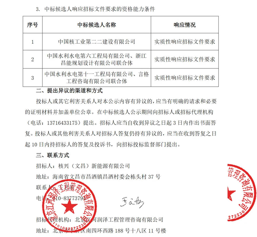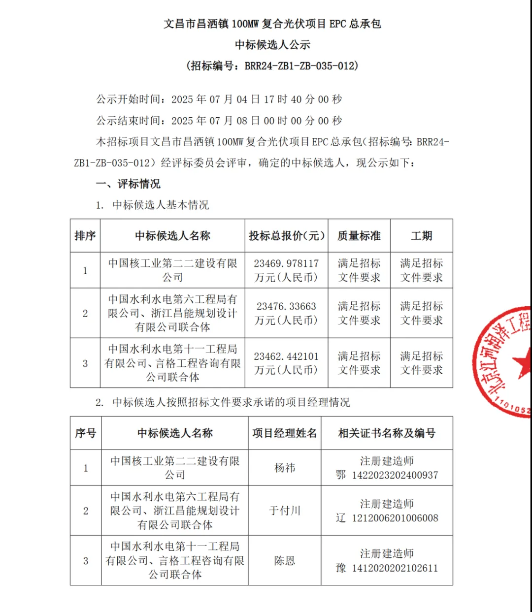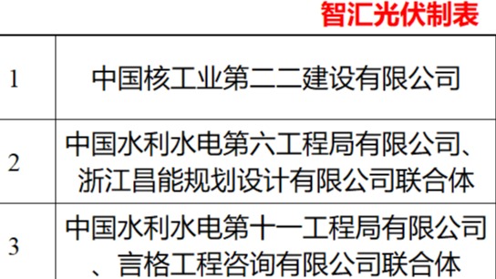 表:中核海南100MW光伏小EPC中标候选人情况