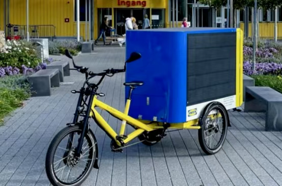 瑞典家居巨头宜家最早将光伏引入网点配送环节,通过太阳能货运自行车解决短距离配送问题。这种太阳能货运自行车的货舱可容纳宜家约90%的产品类型,二氧化碳排放量比现代柴油货车少了98%,既经济又环保。