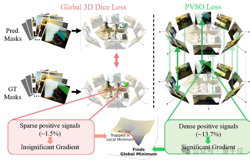 无目标视图的抑制:由于在稀疏视角中存在大量无目标视图(No-target views),PVSO引入了加权抑制机制,放大来自有效视图的有意义梯度,同时抑制来自无目标视图的误导性信号,有效防止了训练过程中的梯度偏差。