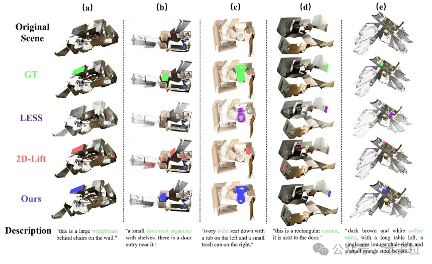 而MVGGT借助多模态语义的导航,往往能精准区分“墙面上的白板”等几何特征相似的目标。即使目标被杂物遮挡,它也能利用上下文信息实现精准定位目标实例。