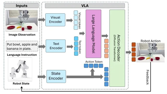 VLA 模型是机器人智能的新前沿,能让机器人感知视觉环境、理解自然语言指令并执行有意义的动作,弥合了图像、传感器数据、人类指令和低级机器人控制指令等多模态输入的语义差距。在非结构化和动态环境中,传统基于规则的编程不可行,VLA 架构尤为重要,它借助深度学习、表征对齐和顺序决策,实现物体操作、导航和交互等任务的泛化。