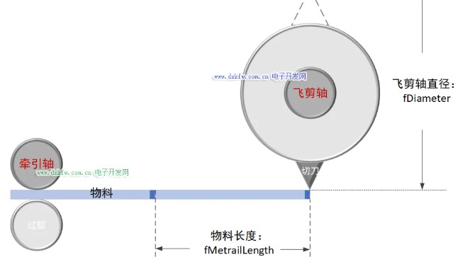 牵引轴:牵引轴和过辊夹住材料,提供物料传送摩擦力,将物料输送至飞剪轴处。