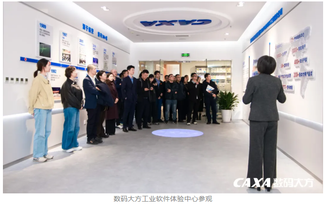 与会嘉宾还参观了数码大方全新升级的工业软件体验中心,沉浸式体验了从设计、仿真、工艺、排产、加工、检测到运维,整条链路的可视化贯通,并通过真实的智能制造产线应用场景,感受到了未来工厂更整洁、安静华人高效,数据驱动决策的科技感。