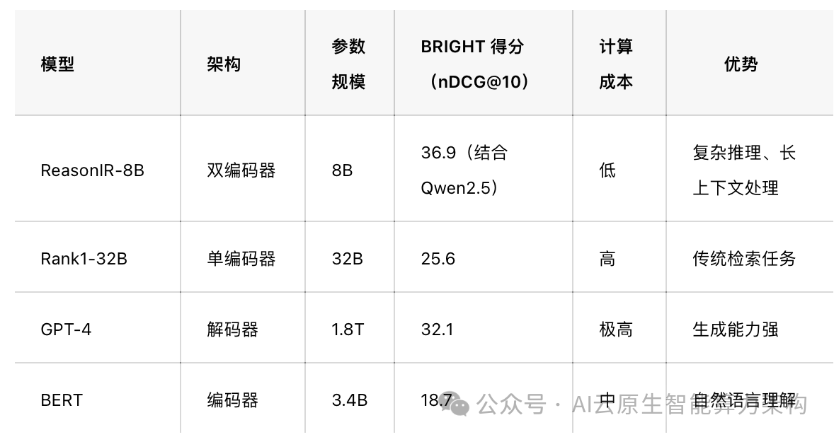 Google:其 BERT 模型在自然语言理解领域表现优异,但在复杂推理检索方面可能面临 ReasonIR-8B 的竞争。 OpenAI:GPT 系列模型在生成能力上领先,但 ReasonIR-8B 在检索效率和成本上更具优势。