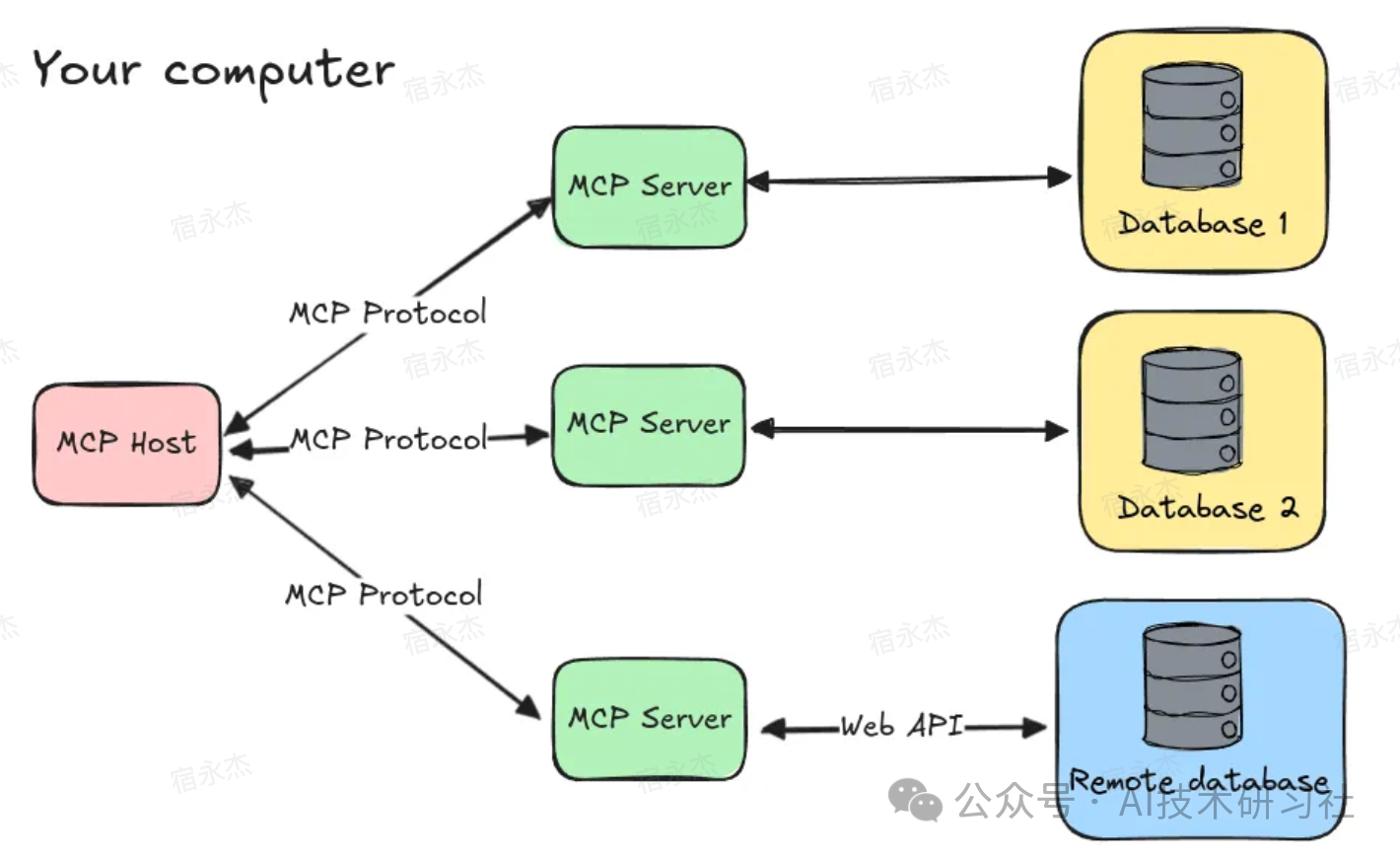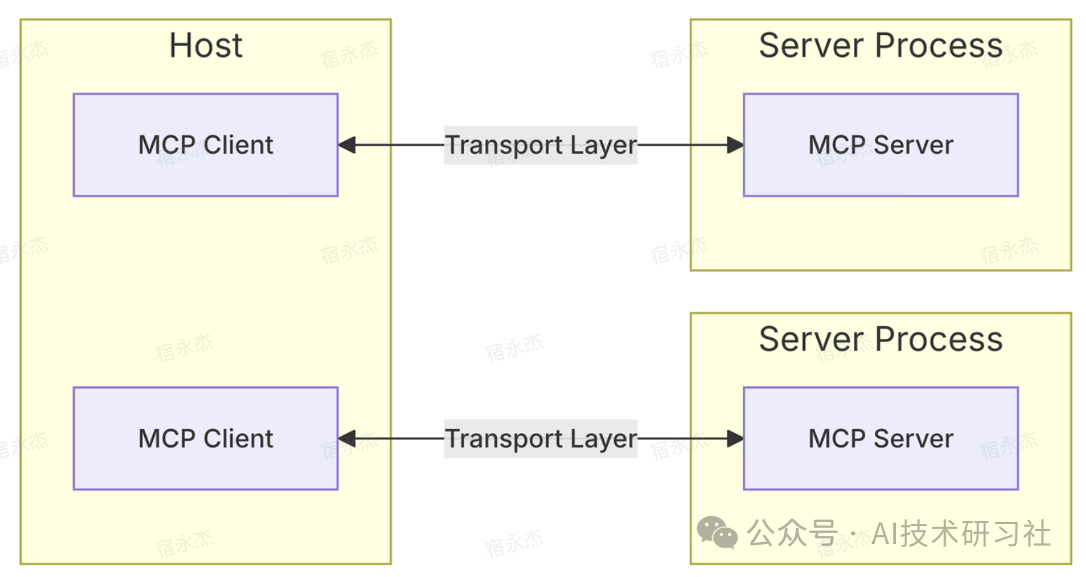 在 MCP 架构中,核心由两部分组成:MCP Host 和 MCP Server。