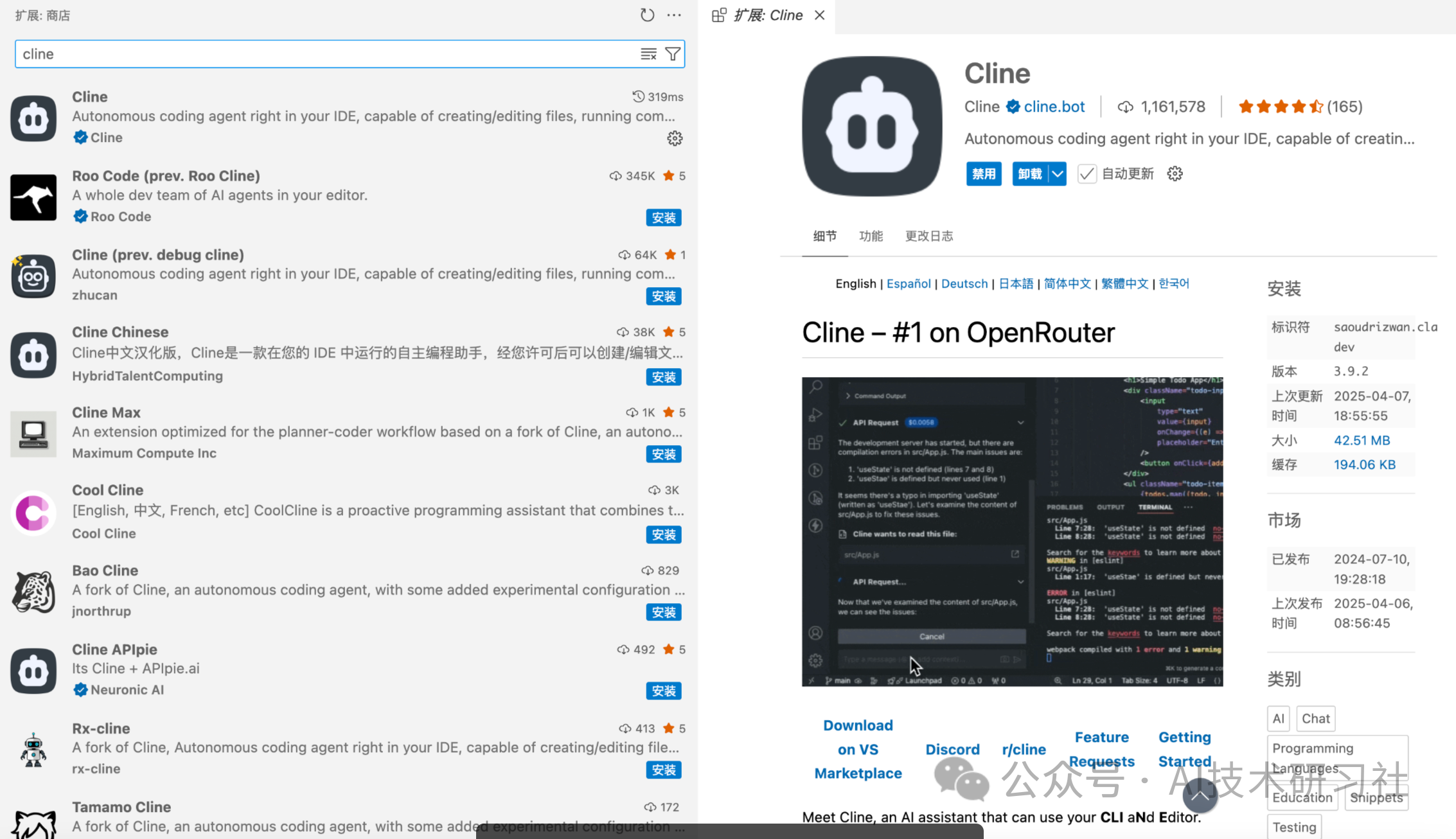 Cline插件:https://marketplace.visualstudio.com/items?itemName=saoudrizwan.claude-dev