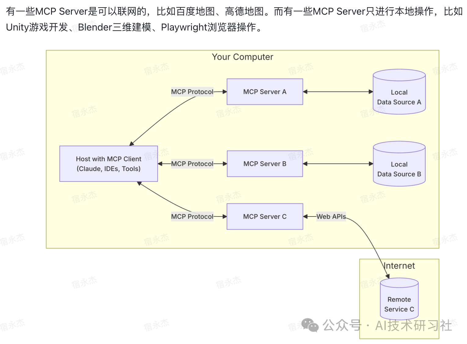 联网 vs 本地操作的区别。MCP Server 按连接方式还可以分为两类: