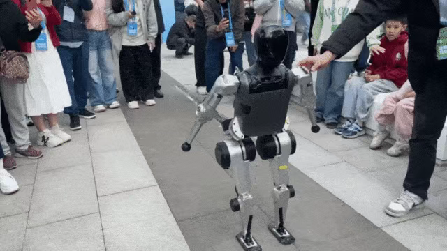 ▲4月19日,松延动力N2机器人在北京机器人马拉松比赛中获得亚军。赛后N2为观众表演后空翻。(图源:NOETIX松延动力)