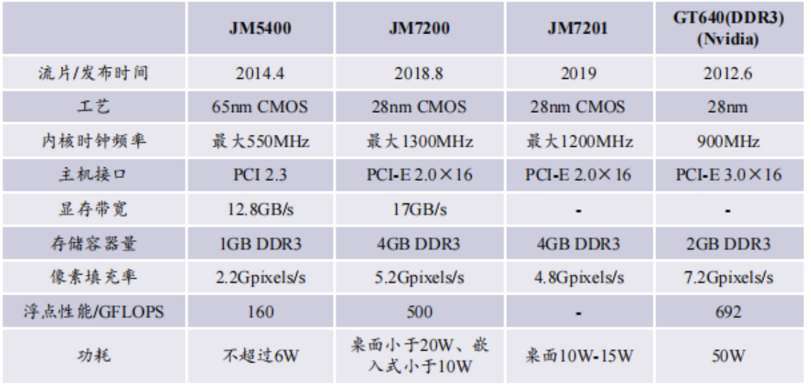景嘉微已量产GPU产品与英伟达 GT640能对比