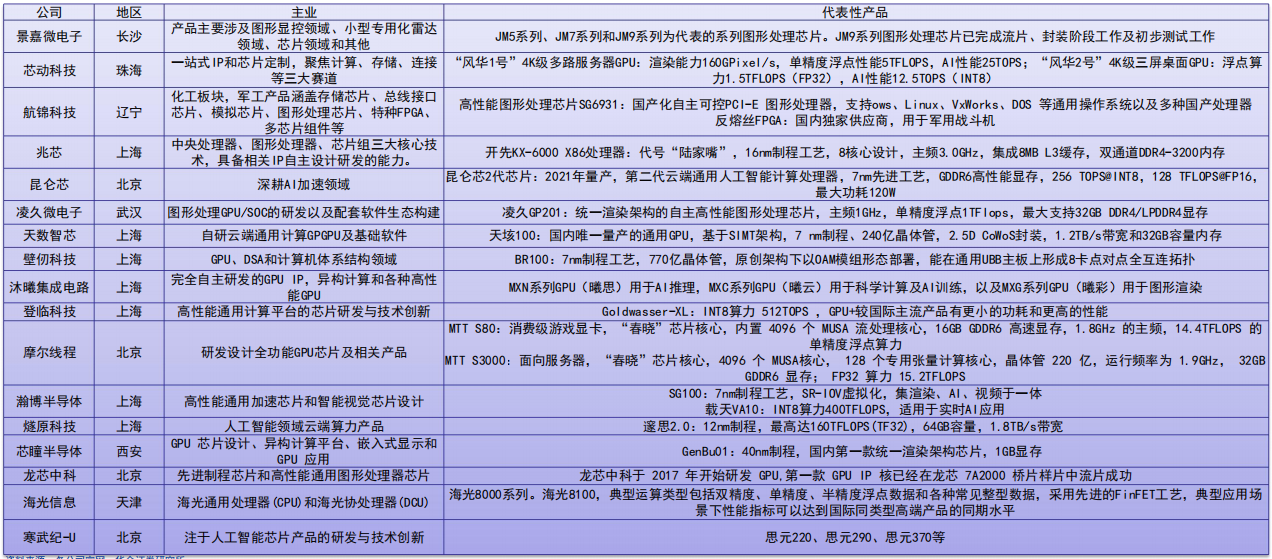 1.18 国产之路已开启,部分国产GPU设计厂商列表