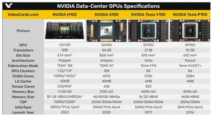 英伟达数据中心GPU对比