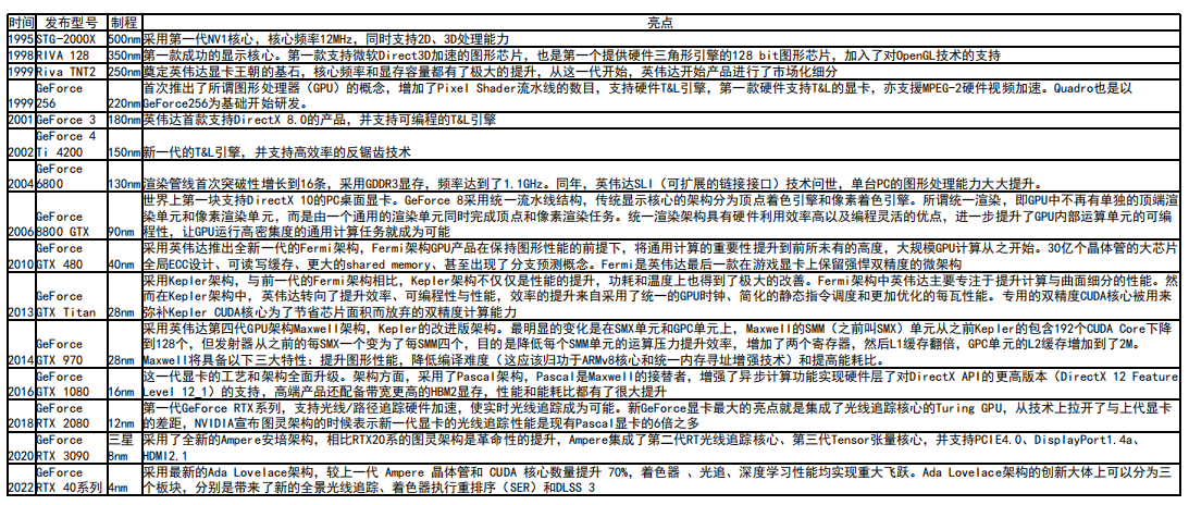英伟达显卡发展历程