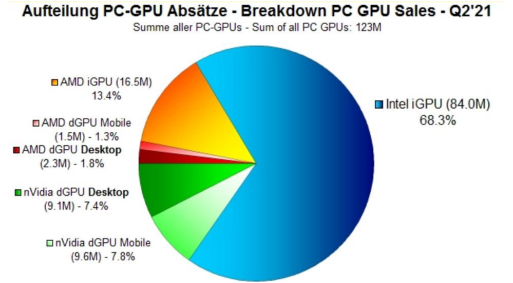 2021年Q2各厂商GPU出货量市场份额占比