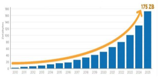 根据IDC的预测,从2018年至2025年,全球的数据增长量达到5倍以上,将从2018年的32ZB增至2025年的175ZB。中国将在2025年以48.6ZB的数据量及27.8%的占比成为全球最大的数据汇集地。