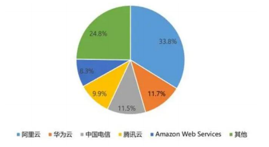 国际权威行业研究机构IDC最新发布《中国公有云服务市场(2022H1&;202202)跟踪》报告。报告数据显示:2022年第二季度,阿里云以33.8%排第一,然后是华为云、中国电信、腾讯云、Amazon Web Services,分别占11.7%、11.5%9.9%、8. 3%。