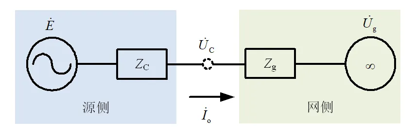 以单构网源并网为例,可考虑从交流滤波电容处对整个电力网络进行划分,如图2所示。划分后的左侧部分包含从构网源到交流滤波电容之间的部分,称之为“源侧”;右侧部分包含从交流滤波电容到电网负荷的部分,称之为“网侧”。