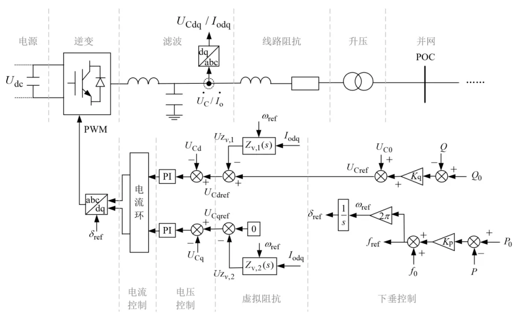 双碳目标背景下,我国新型电力系统呈现出“双高”特征,系统惯性减小,电网强度减弱。近年来,能够适用于弱电网环境的构网型(grid-forming,GFM)控制策略成为相关领域的研究焦点,下垂控制和虚拟同步机技术尤其受到关注。即使在各类新型控制技术迅速发展的当下,下垂特性仍有重点分析和再认识的必要。在下垂控制中,常需引入虚拟阻抗以实现功率解耦、过电流抑制等功能,但同时,虚拟阻抗的加入也将显著影响下垂控制的端口特性。