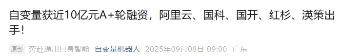 在深圳机器人创业浪潮中,新生代力量可谓是如雨后春笋般涌出。这不,继智平方、逐际动力、众擎机器人后,深圳南山这家具身智能创企再获巨头押注。9月8日,自变量机器人披露了最新一轮融资进展,在A+轮融资中,企业不仅首次吸引到了阿里云入局,老股东美团战投更是超额跟投,而且国开金融、红衫中国、策资本也同步跟投。据公开资料显示,在此轮巨额融资之前,这家成立不到两年的具身智能新秀已完成四轮亿元级融资,累计数额超10亿元,而且投资方多位深耕人形机器人领域,在产业链上频频出手的头部机构。像是投资了宇树科技、银河通用、云鲸、松延动力等近20家机器人的首程控股,还有今年7月接连对“杭州六小龙”云深处科技、“清华系具身智能”星动纪元进行押注的华映资本等。那么自变量机器人到底有何魔力能让巨头们持续押注呢?华映资本创始管理合伙人季薇曾透露道,“自家之所以对其青睐有加,核心在于自变量‘稀缺团队基因+全栈技术壁垒+战略场景卡位’三大关键优势。”从创始团队来看,创始人兼CEO王潜在清华大学本硕连读后,前往美国南加州大学继续深造,读博期间在美国顶级机器人实验室深度参与了机器人学习、人机交互等前沿领域的研究,而且还是最早在神经网络引入Attention机制的学者之一。担任自变量CTO的王昊,则是北京大学计算物理博士,主导研发过“太乙”、“燃灯”、以及“姜子牙”千亿级大语言模型等,在大模型领域深耕多年,积累了扎实的技术功底与丰富的实战经验。清华北大两大学霸的联手,让自变量机器人刚起步就站在了通用具身智能的技术奇点上,而且技术迭代迅猛。不到一年时间,自变量机器人便训练出最大参数规模的具身智能通用操作大模型Great Wall系列的WALL-A。在2025全球人工智能终端展会上,WALL-A模型便展现了出色的长序列训推能力和泛化性。搭载该模型的机器人除了能进行快递分拣外,还能包揽一些叠衣服、擦桌子、做刨冰等家务活。不过自变量机器人并非软件偏科生,在打磨WALL-A这颗“大脑”的同时,也始终推动硬件载体的研发。今年8月该公司便推出了轮式双臂仿人形机器人“量子2号”,全身自由度多达62个,搭配夹爪工具,还可实现清洁刷、拖布头等清洁操作。从技术闭环到产品落地,自变量机器人的每一步突破都印证着顶尖学术资源与工程实践结合的爆发力。未来随着近10亿元新融资的注入,这家具身智能黑马无疑将在通用机器人赛道上卯足动力,推动具身智能走向现实世界。来源:OFweek维科网