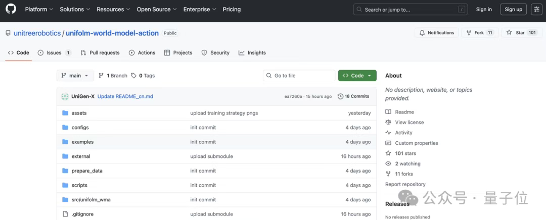目前UnifoLM-WMA-0训练代码、推理代码、模型Checkpoints通通开源,GitHub迅速揽获100+Star。