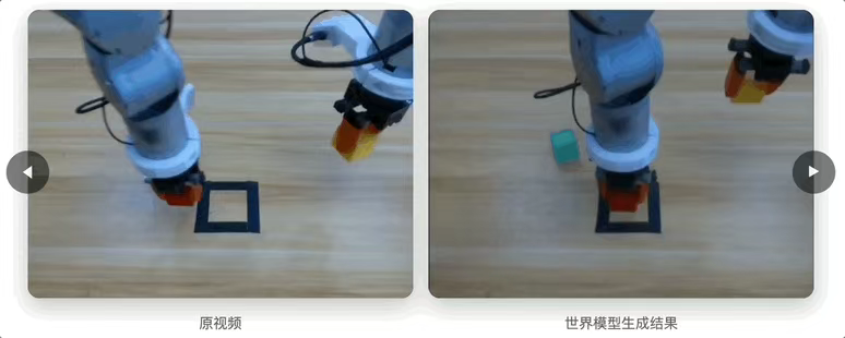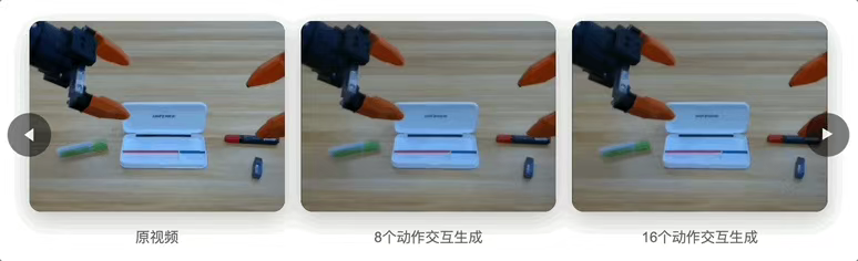只要给它“当前场景的图像”,再加上一定数量的“机器人未来要做的动作指令”,它就能实现可控的交互生成,生成的内容能精准匹配预期。