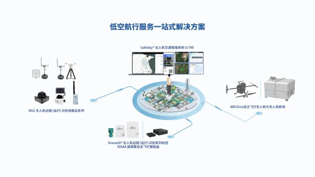 而安装在电脑、平板等地面终端的SafeSky®无人机交通管理软件,则类似一个“交通指挥中心”。由于目前国内的超视距飞行活动(即高度120米以上或距离500米以外)需要单独申请空域授权,SafeSky®提供了符合空域管理规定的数据库,用户可及时查询全国200个城市范围内的空域现状,实现合规飞行,并有超视距技术、航路规划、冲突检测等功能,支持多机协同作业。另一方面,针对无人机,安擎科技也通过研发形成一套超视距自主飞行体系。该体系包括ARCGine自主无人机系统、无人机机场系统和DAA机载感知规避设备套件。其中,自主无人机系统具备类似汽车智驾系统的“感知-决策-执行”的闭环能力,能在不依赖人工遥控的情况下完成任务规划、路径飞行和状态监控;