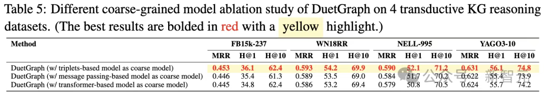其中α可在训练过程中自动学习,适应不同关系模式和上下文复杂度。这一机制兼具局部鲁棒性与全局表达能力,使 DuetGraph在复杂推理任务中具有更强的泛化性。