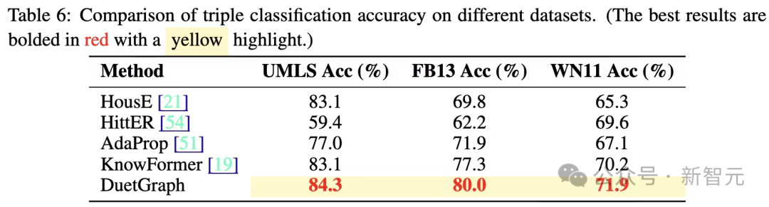 通用性:DuetGraph不仅在知识图谱补全任务中表现优异,在三元组分类等其他知识图谱任务上同样展现出出色的性能,体现了其良好的任务适应性与广泛适用性。