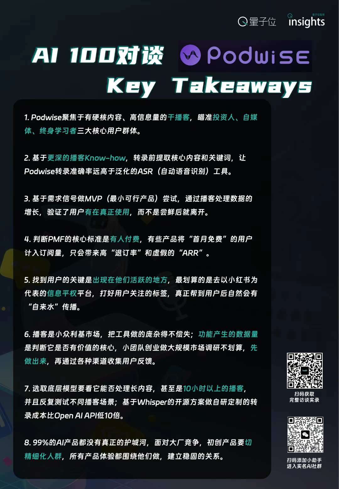 量子位智库:很多人发现的需求可能只是小范围的,不一定能支撑产品长期发展。你们是通过什么信号确认Podwise达到PMF,值得长期商业化投入?