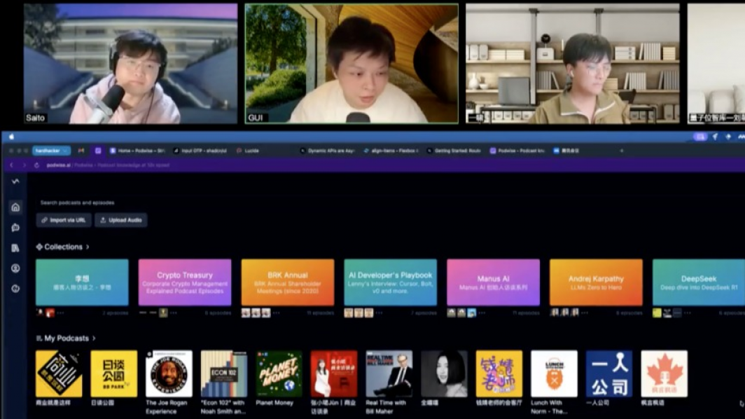 为了进一步探寻这款产品背后的逻辑、设计与规划,量子位智库邀请到了Podwise的创始团队, 也是硬地骇客播客节目的三位主播——Saito、归归和一啸,和我们深入聊了聊这款产品。