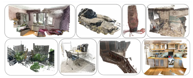 在三维重建的测试中:就深度估计来说,给定一张单视角照片,它能估计出照片中每个像素点距离相机的实际深度,误差很小;就点云估计来说,给定几张多视角照片,它能生成密集且准确的三维点云模型,清晰地勾勒出物体的形状;就相机姿态估计来说,它能反推出拍摄每张照片时,相机在空间中的精确位置和角度。