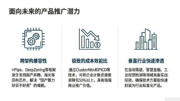 成本效能比:通过 ClusterAttn 和 PICO 技术,团队能够将企业原本需要数百万投资的计算资源需求降低50%以上,具有极强的商业推广价值。
