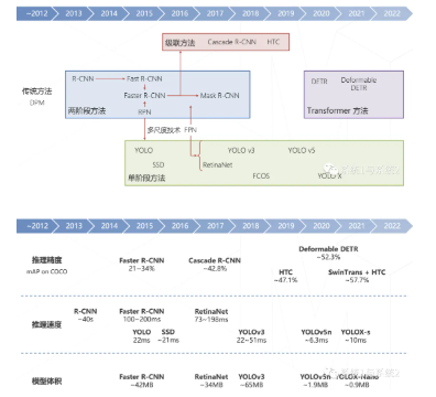 目前目标检测的精度基本能做到60%以上,推理速度上面,YOLO系列主打速度快,而模型体积则越来越小。