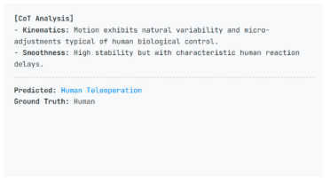 AutoEval 能够以 99.6% 的准确率区分视频是来自真实的策略生成还是人类遥操作,有效解决了「来源模糊性」问题,为机器人社区提供了一套权威的防伪工具