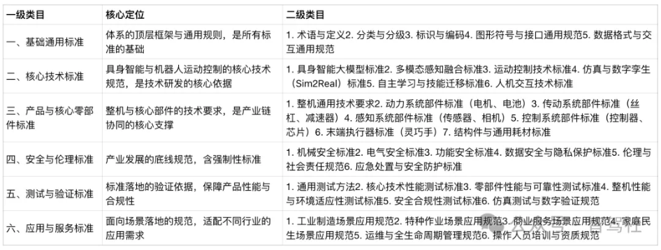 覆盖从基础通用、核心技术、零部件、整机到应用、安全的全产业链,同时采用模块化架构,支持单类标准的独立更新与快速迭代。 底线约束与分级引导并行