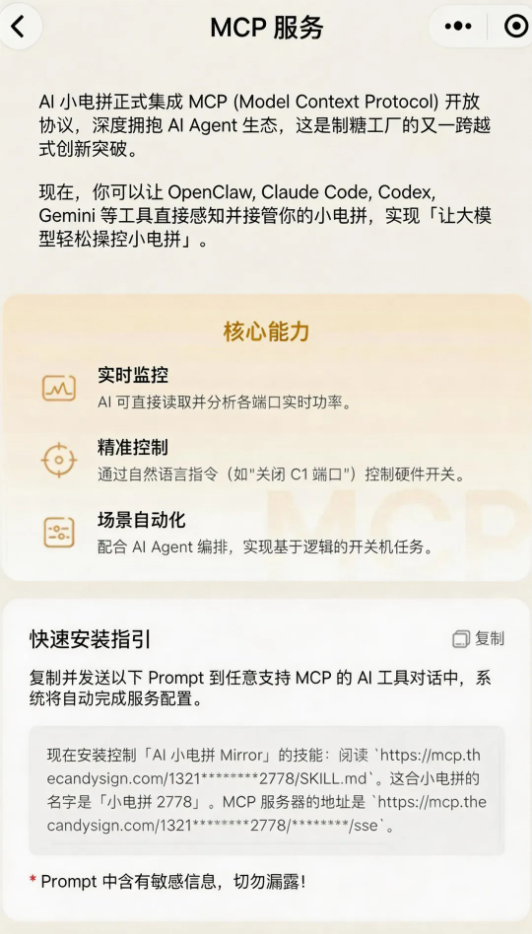 它能做到这一点,是因为它结合了我们日历的文字、过去的开会习惯,以及当前全屋设备的状态。实测 miclaw 能结合日历和米家设备帮助作电视更让人惊喜的是,miclaw 还支持 MCP(Model Context Protocol)开放协议。这意味着 PC 上那几千个 MCP 工具,理论上也能接到手机上用。第三方 App 可以主动跑来告诉 AI:「大哥,我能提供这些能力,您有需要随时调」。
