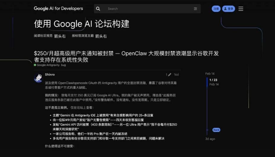 甚至一些用户还因为将 Google 账号接入 OpenClaw,触发平台异常负载检测,导致整个 Google 账号被封,Gmail、YouTube 也被一锅端。