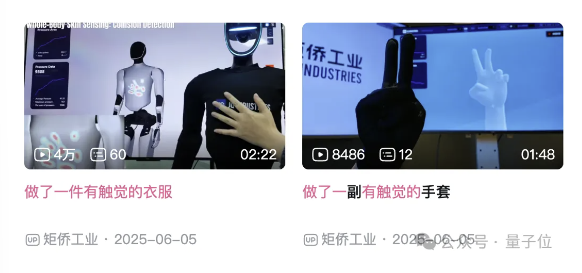 2025年,他们在B站发布了《做了一件有触觉的衣服》《做了一副有触觉的手套》等一系列视频,详细展示了机器人穿上电子皮肤的玩法。