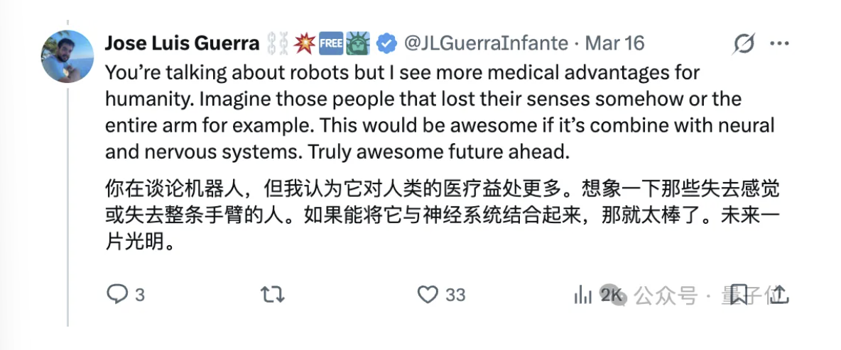 它对人类医疗也有好处,比如帮助那些丧失神经感知或失去整条手臂的人重新找回触觉。