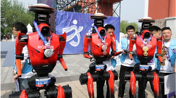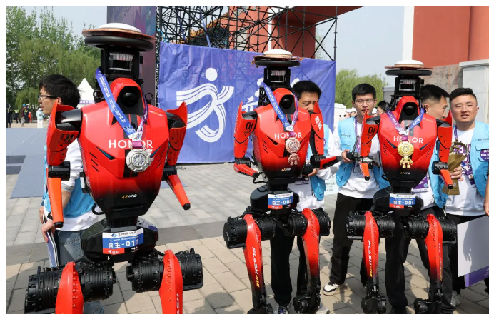 “备赛更加充分,很多机器人用上更大功率电机、更强大散热设计、更可靠自研肢体关节,在奔跑姿态、风阻上下足功夫,不少机器人峰值扭矩大幅提升,专为跑马而生,爆发力极强。”荣耀赛队相关负责人说。