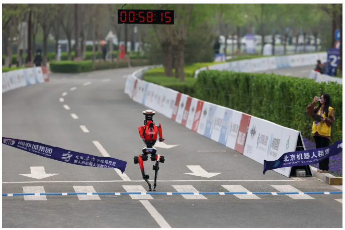 “50分26秒完赛!”19日,随着主办方公布成绩,在2026北京亦庄半程马拉松暨人形机器人半程马拉松赛事中,深圳荣耀智慧科技开发有限公司齐天大圣队的“闪电”机器人以50分26秒的净时成绩夺冠,超过57分20秒的人类男子半马纪录,创造人机竞速新历史。