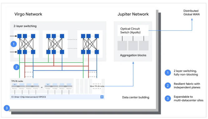 图 | TPU 8t 机架级与 Virgo 光纤通道的连接(来源:谷歌)