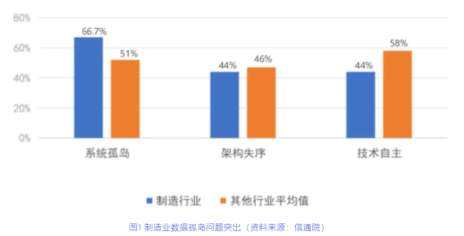🔷 二是“管不住”。海量数据分散在ERP、MES、PLM、CRM等各个业务系统中,缺乏统一的标准和规范。同一个物料编码,在研发、采购、生产系统里名称各不相同,数据“同名不同义、同义不同名”的乱象比比皆是,数据孤岛问题根深蒂固。据中国信息通信研究院的调研数据显示,在企业数字化平台建设中,数据孤岛问题显著,66.7%的制造企业存在严重的“系统孤岛”问题。